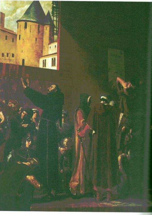 Alcuni storici lodano la modernità dell'interrogatorio dell'Inquisizione, che consente all'indagato di rispondere alle domande, o persino di difendersi, cosa che il diritto consuetudinario feudale certamente non faceva. Il sistema inquisitorio, tuttavia, getta lo sventurato nelle fauci di una trappola terrificante. Non sa quali accuse gli vengono rivolte, chi lo ha denunciato, né cosa sappia o ignori l'onnipotente inquirente. Come può proteggere se stesso o la sua famiglia? Sa anche che qualsiasi esitazione nella sua risposta equivarrà a una bugia in tribunale e gli farà guadagnare le condanne più severe. Costretto a denunciare e confessare, indebolito dal tempo trascorso in isolamento, si difende come meglio può, usando stratagemmi come accusare i morti, ormai salvi. La tortura fu autorizzata dal papato presso il Santo Tribunale a partire dal 1252. Non sembra che fosse ampiamente utilizzata. Inutile per i monaci catari, i buoni uomini e donne catturati, che non cercavano mai di nascondere la propria fede, anche se, a volte, solo per poi rinunciarvi, veniva applicata solo ai credenti che si rifiutavano di collaborare . I metodi più comuni erano lo stiramento alla ruota o lo schiacciamento delle dita in morse, i sinistri "bastoni". La forza dell'Inquisizione risiede soprattutto nella sua capacità di impressionare il popolo cristiano, quotidianamente, attraverso l'abile e insidiosa propaganda istigata dal ministero pastorale domenicano, sulle piazze delle cattedrali, attraverso il grande spettacolo di massa del suo trionfo, messo in scena durante le solenni sessioni dei sermoni generali.
